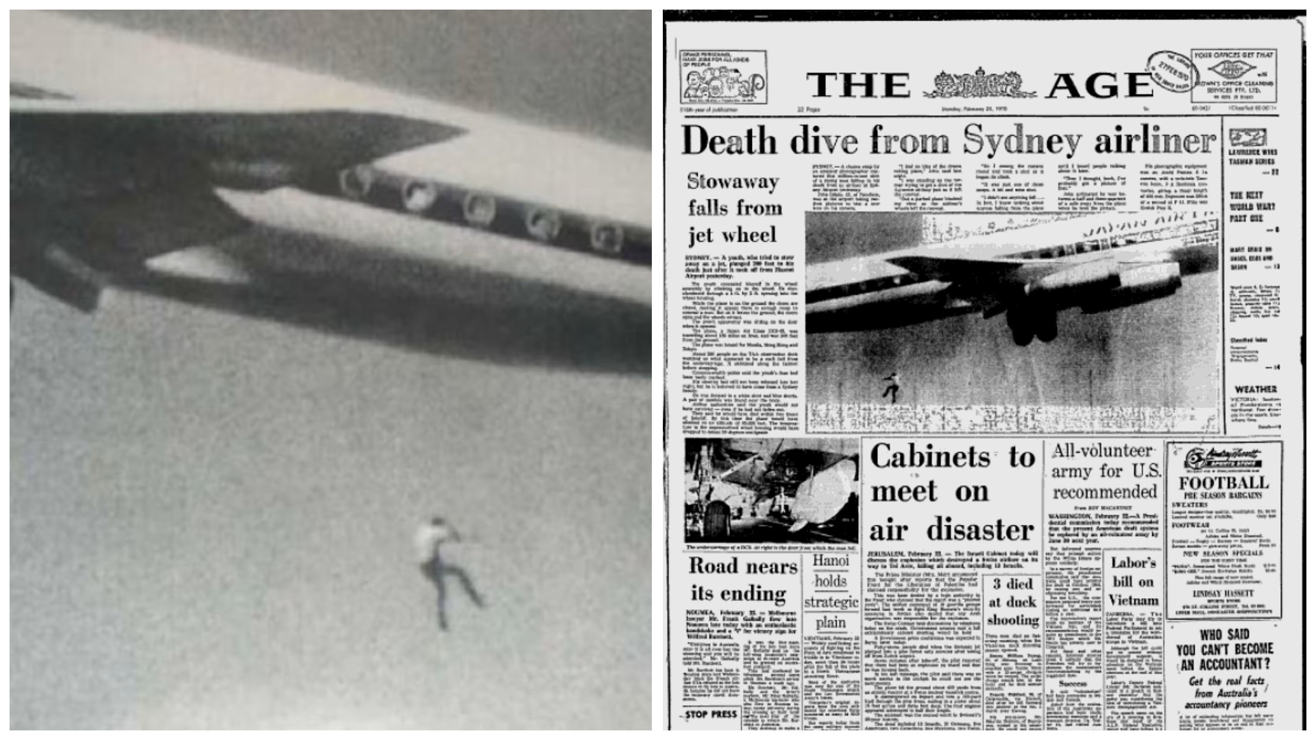 The Age (Melbourne), 23 Feb 1970, front page (“Death dive from Sydney airliner”)—contemporary coverage confirming identity/age and event timing. (Google News)