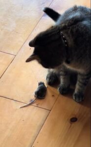 The first on the scene was the family’s black-and-white house cat, usually fearless when it came to toys, shadows, or even laser pointers. But this time, when it saw the real deal — a living, breathing mouse — it froze. No hiss. No pounce. Just confusion.