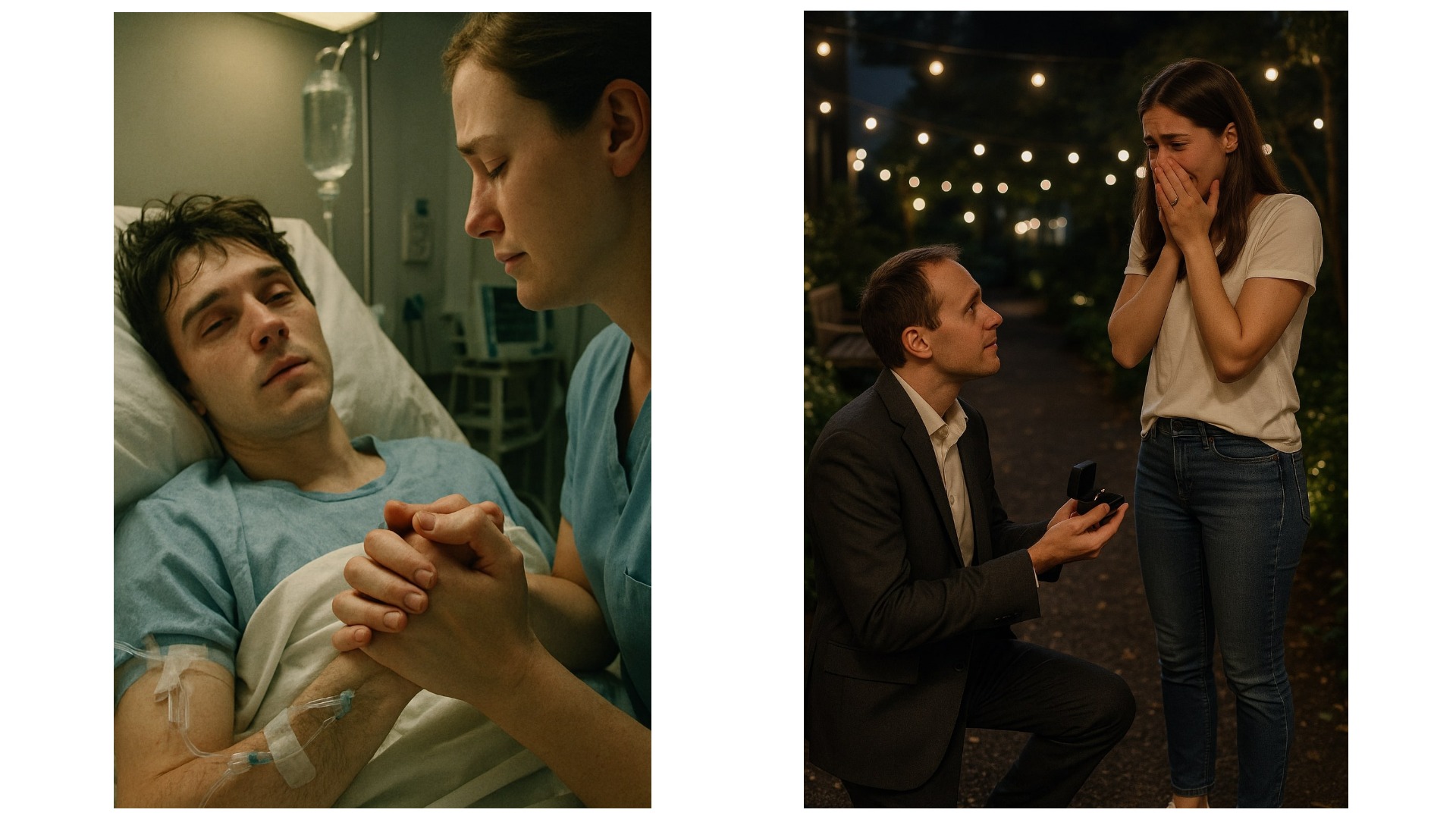 Late one evening, in the hospital’s quiet garden, Grant took her hand and whispered: