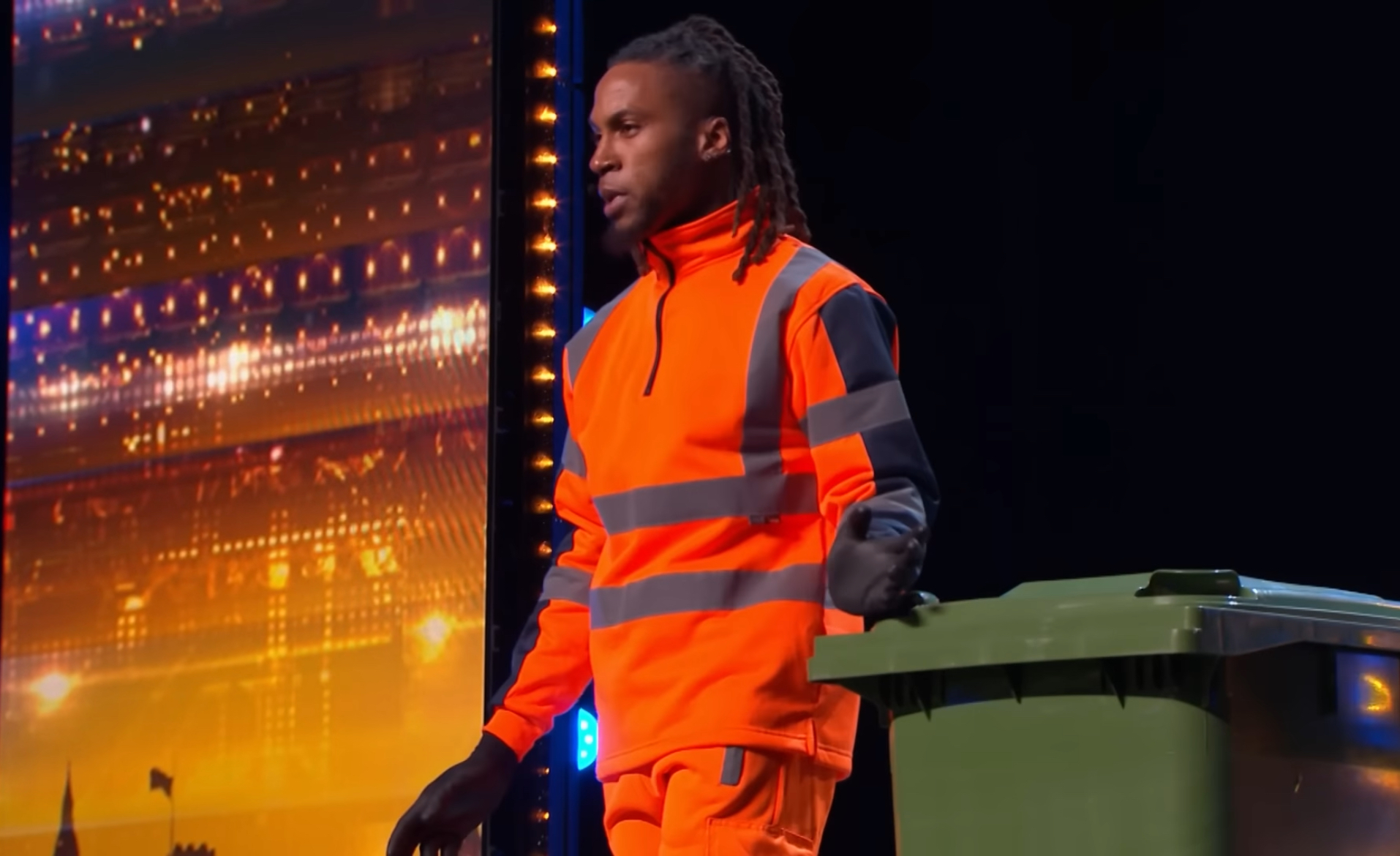 “A man in a high-vis jacket stepped onto the BGT stage dragging a bin behind him…”