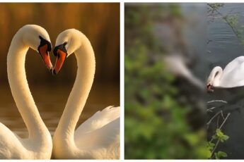 The swan—a mottled silhouette of grief—stood guard over its lifeless mate, floating motionless.
